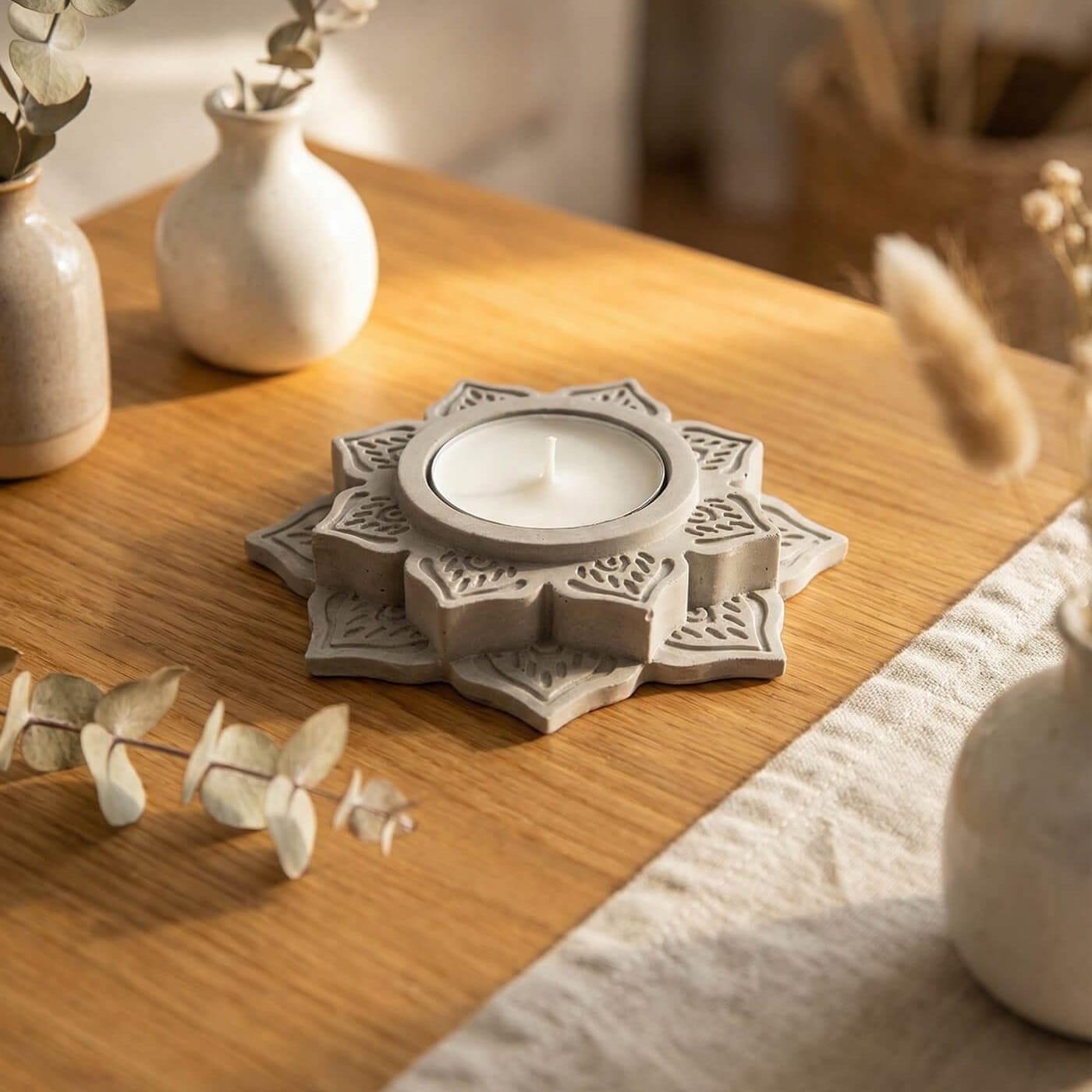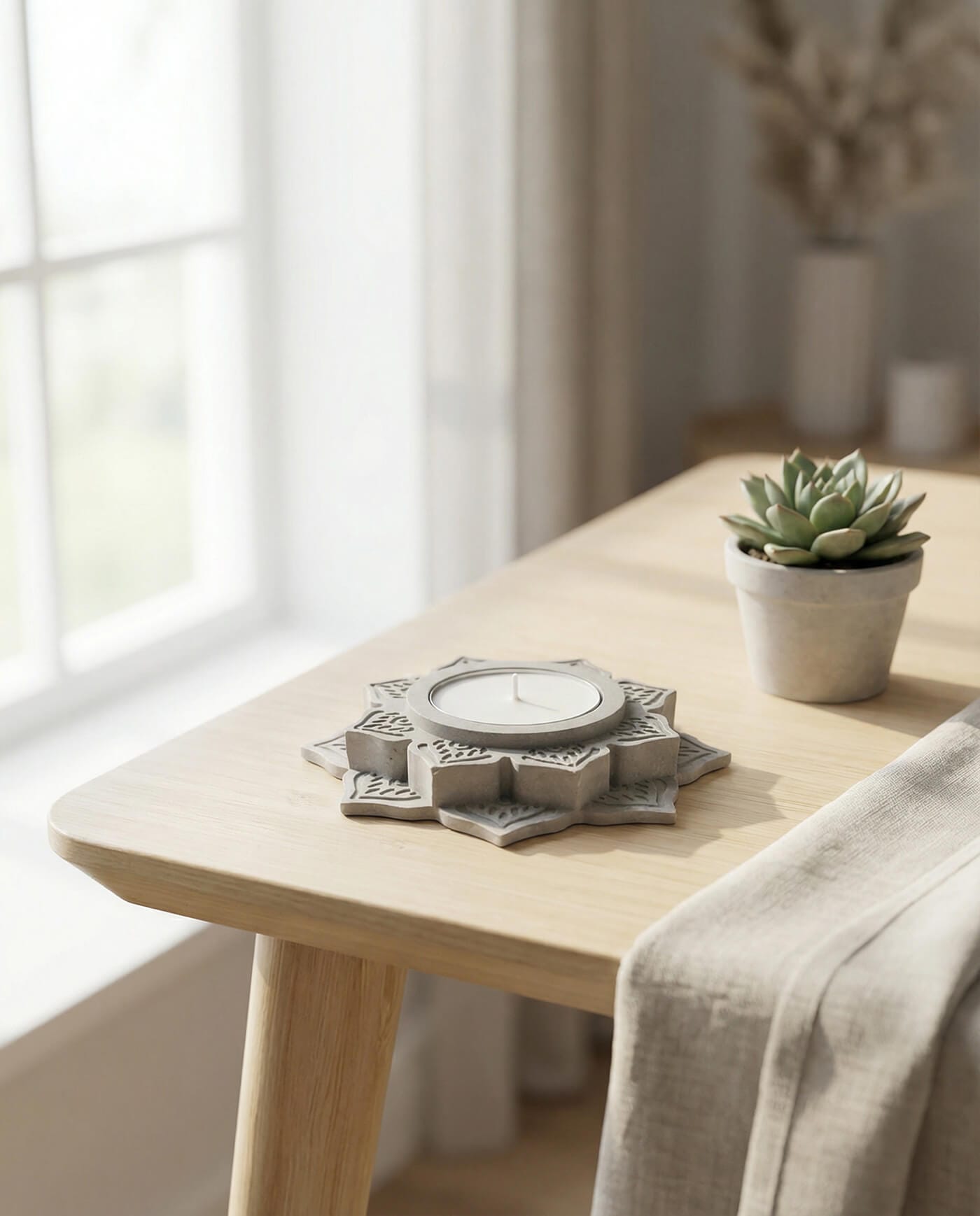Minimal Ramadan decor with a concrete candleholder