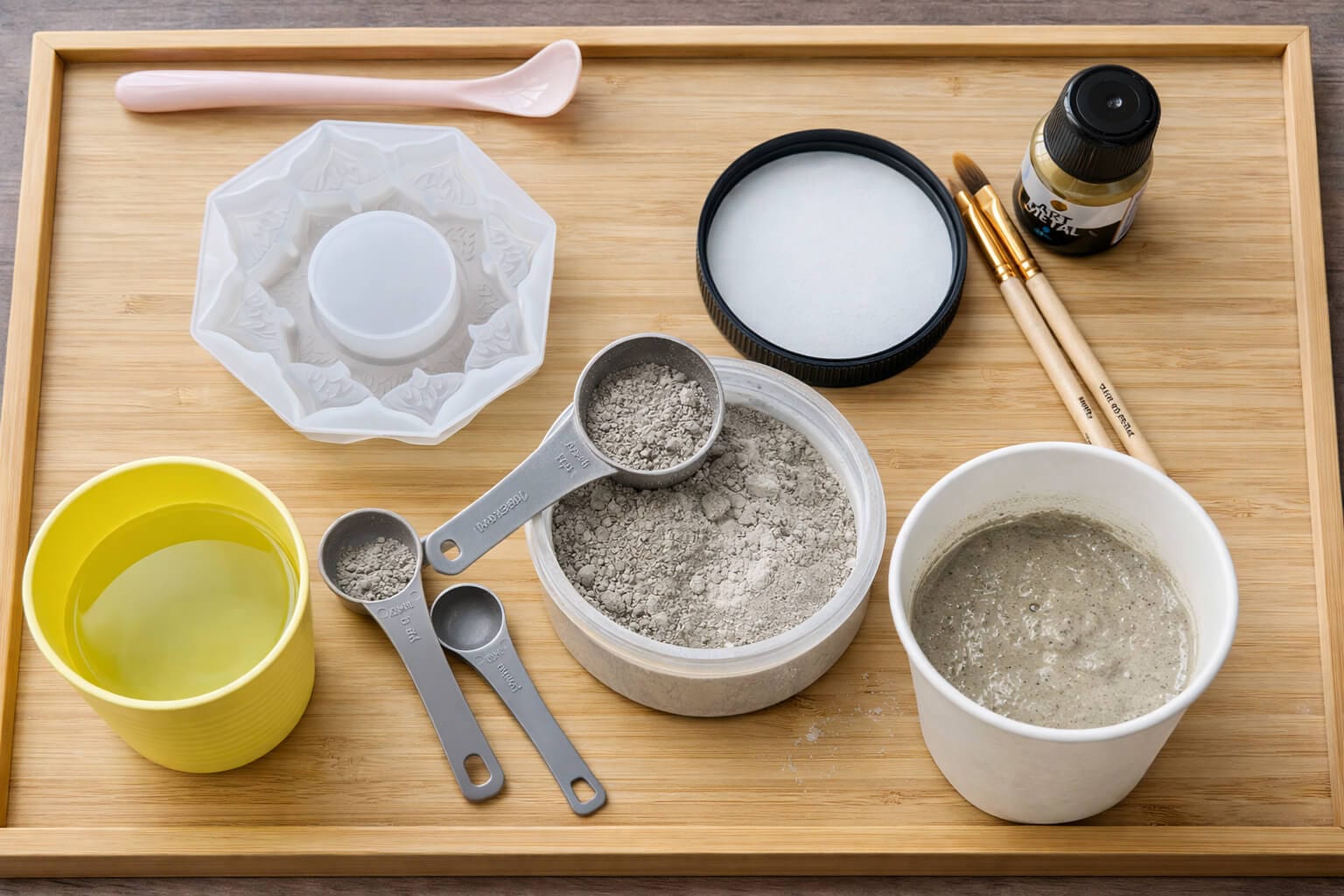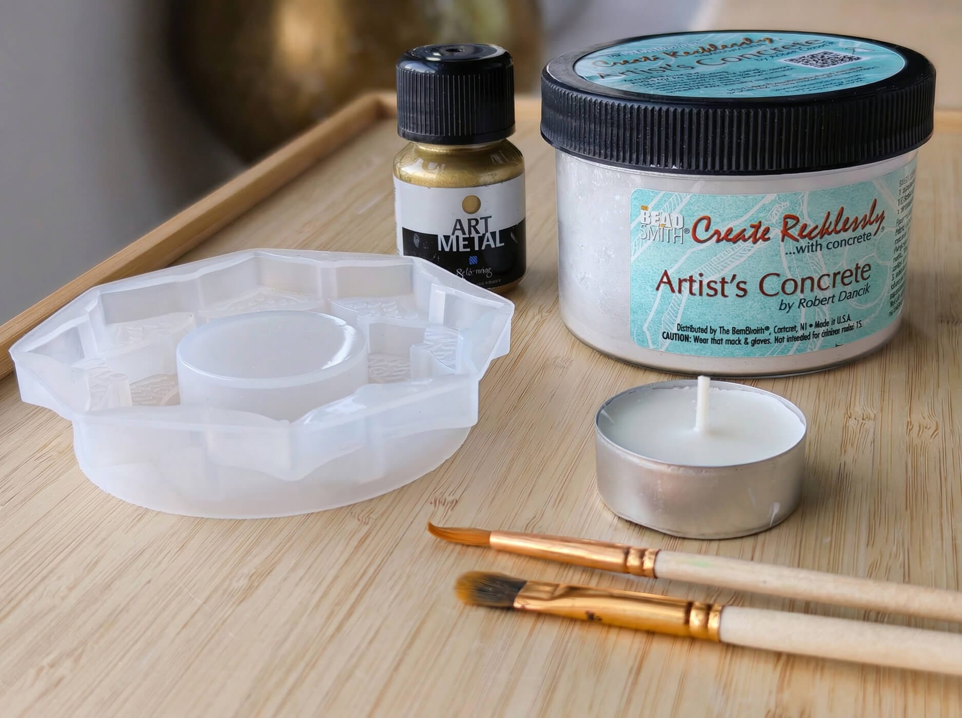 This project uses artist-grade materials, not hardware-store cement. Artist’s concrete is designed for decorative objects, finer details, and indoor use.