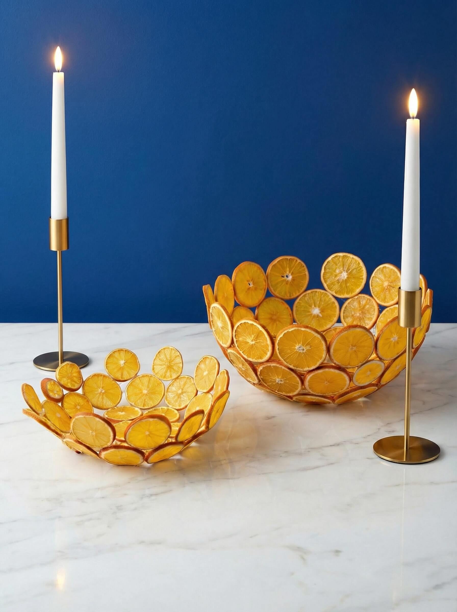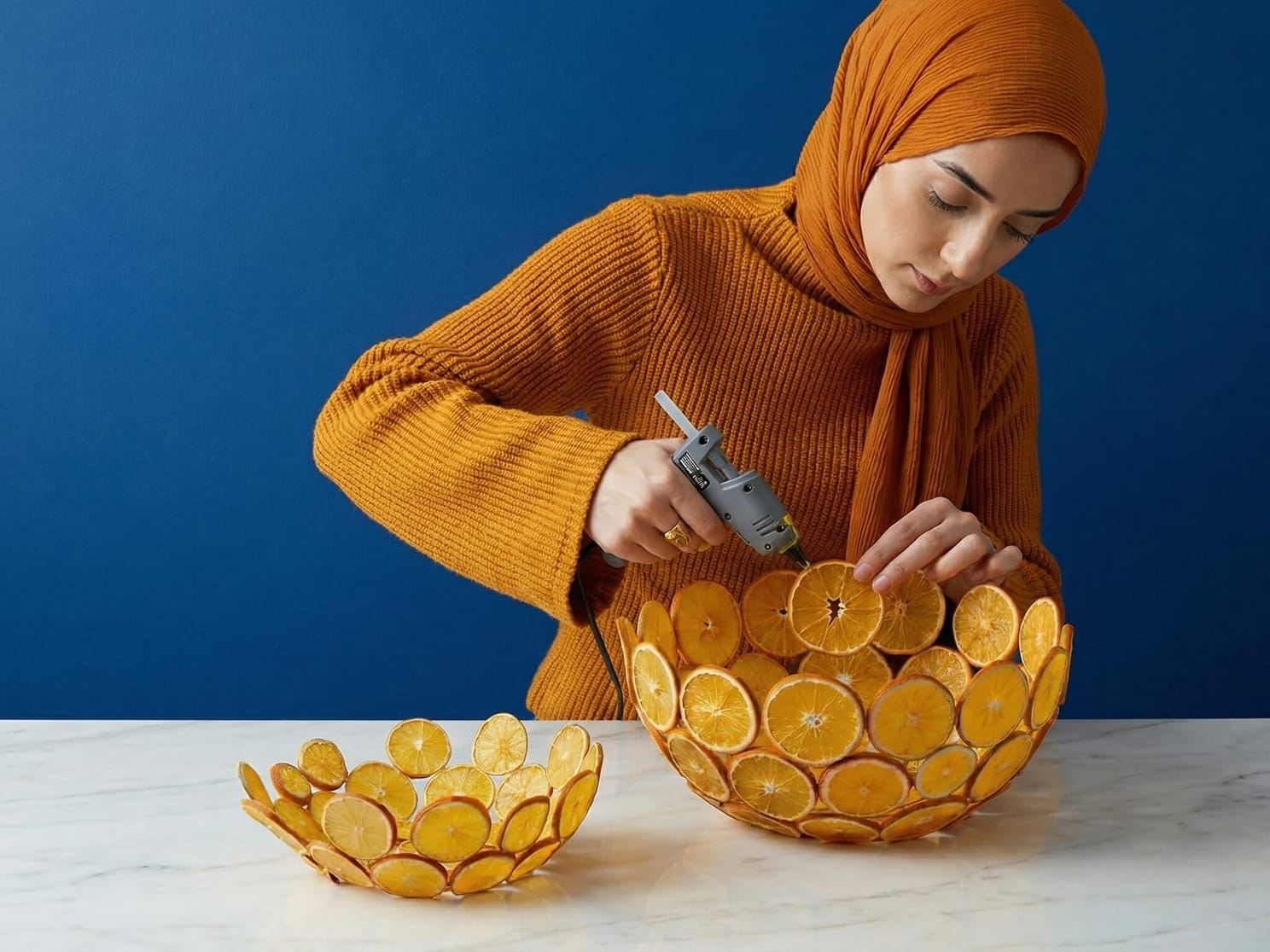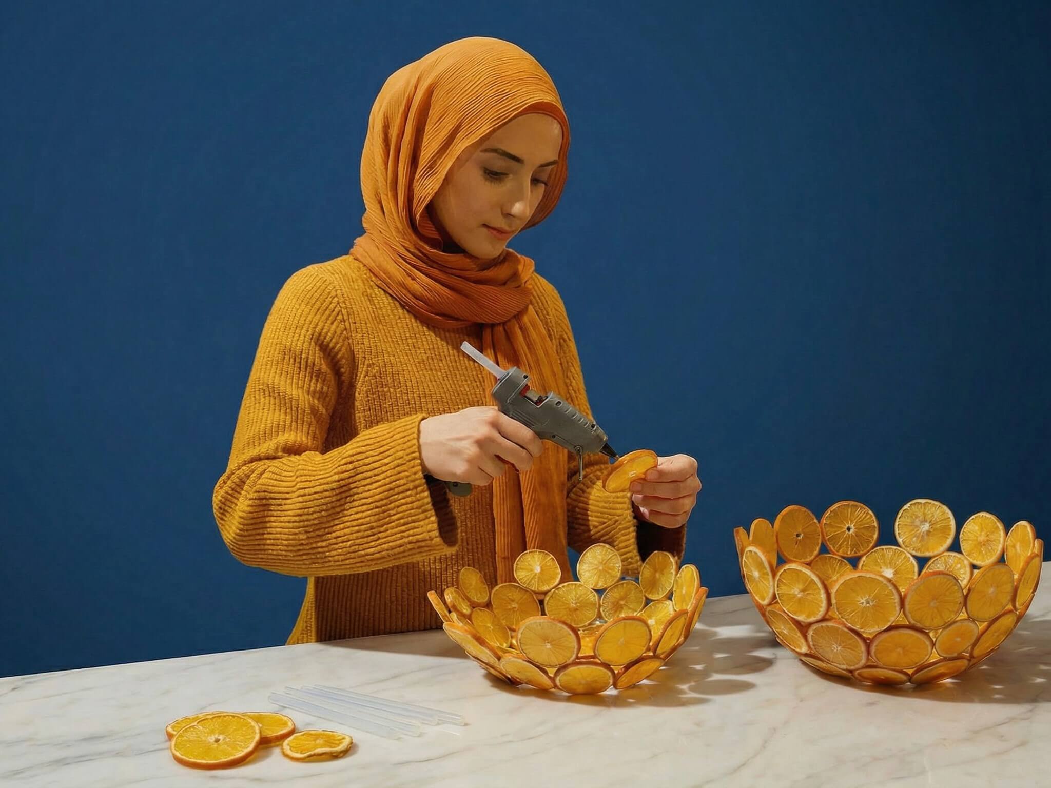 Once the glue has fully dried, and the orange slices have fully air-dried, carefully lift the bowl out of the mould.