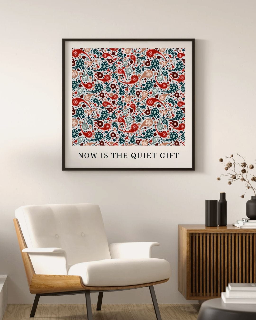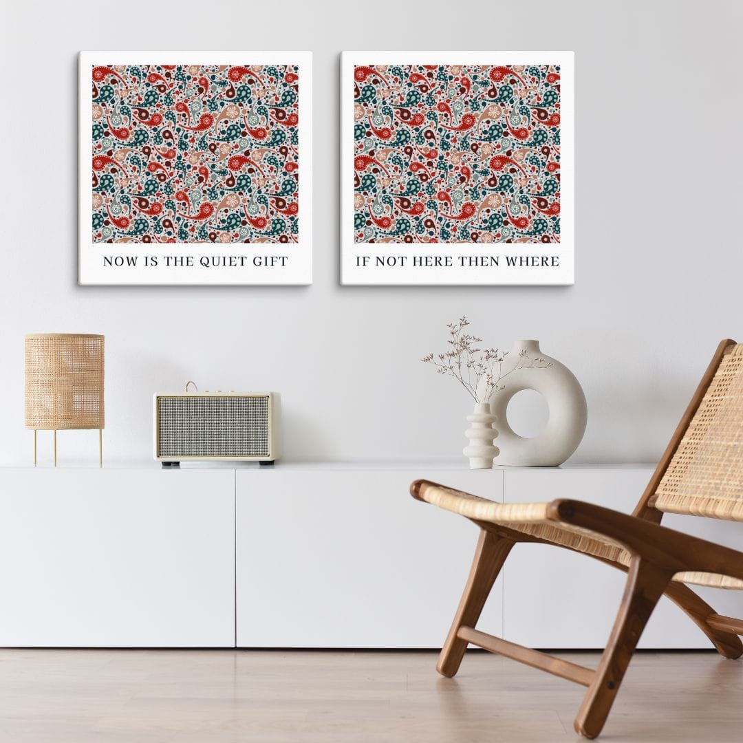 At Deenista, we brought this reflection into a printed-on-canvas paisley artwork titled “Now Is the Quiet Gift.”