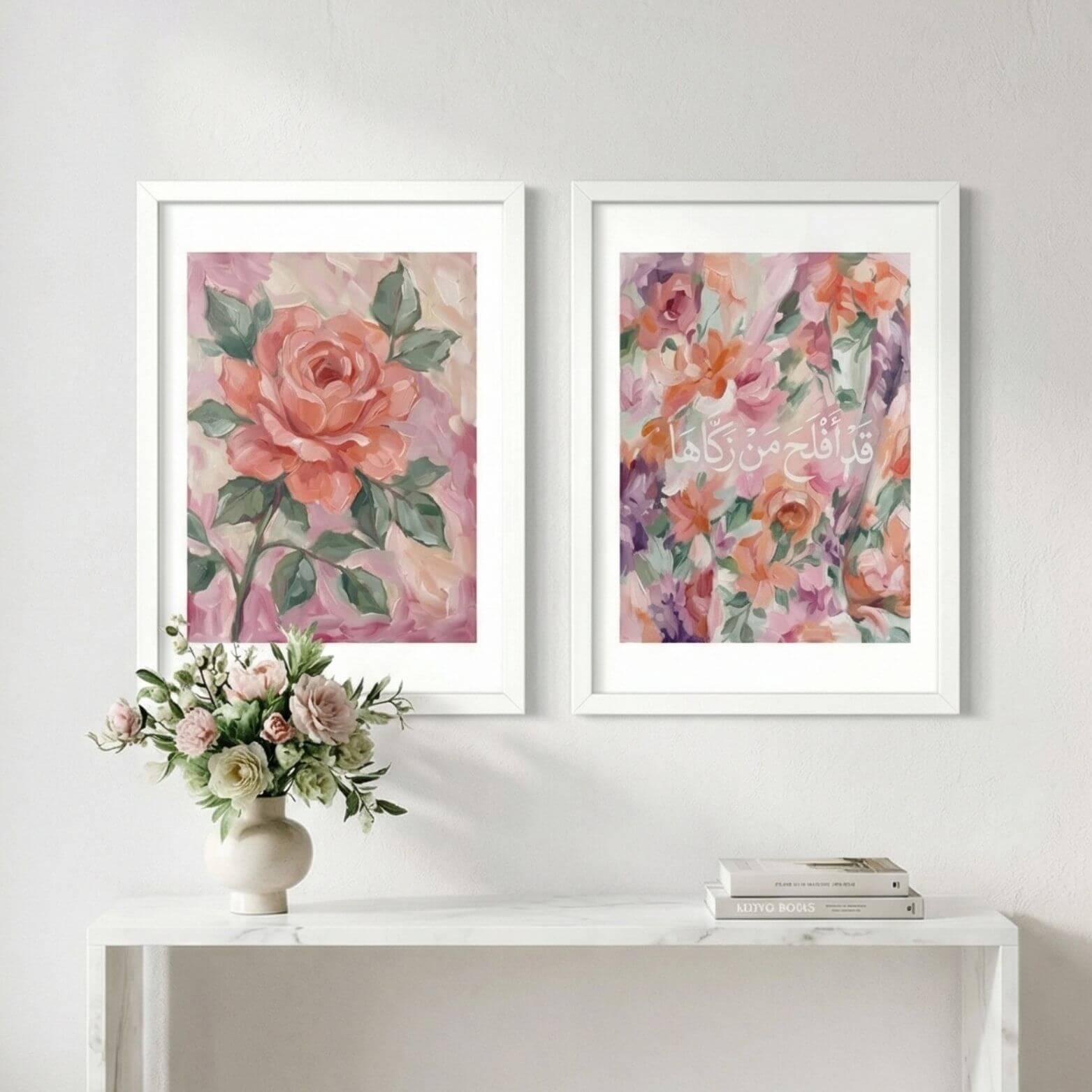 Floral Quran verse printable duo inspired by Qad aflaha man zakkaha.